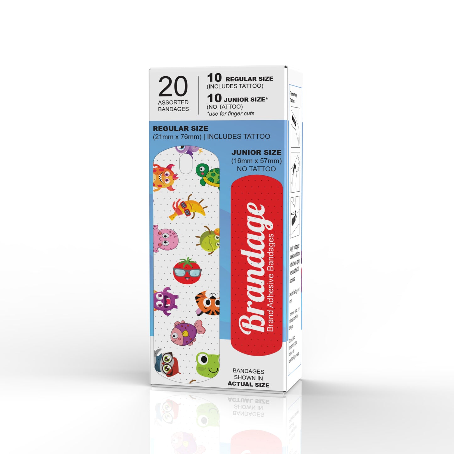 Brandage brand adhesive bandages reward your little one by transferring a temporary tattoo during bandage removal.